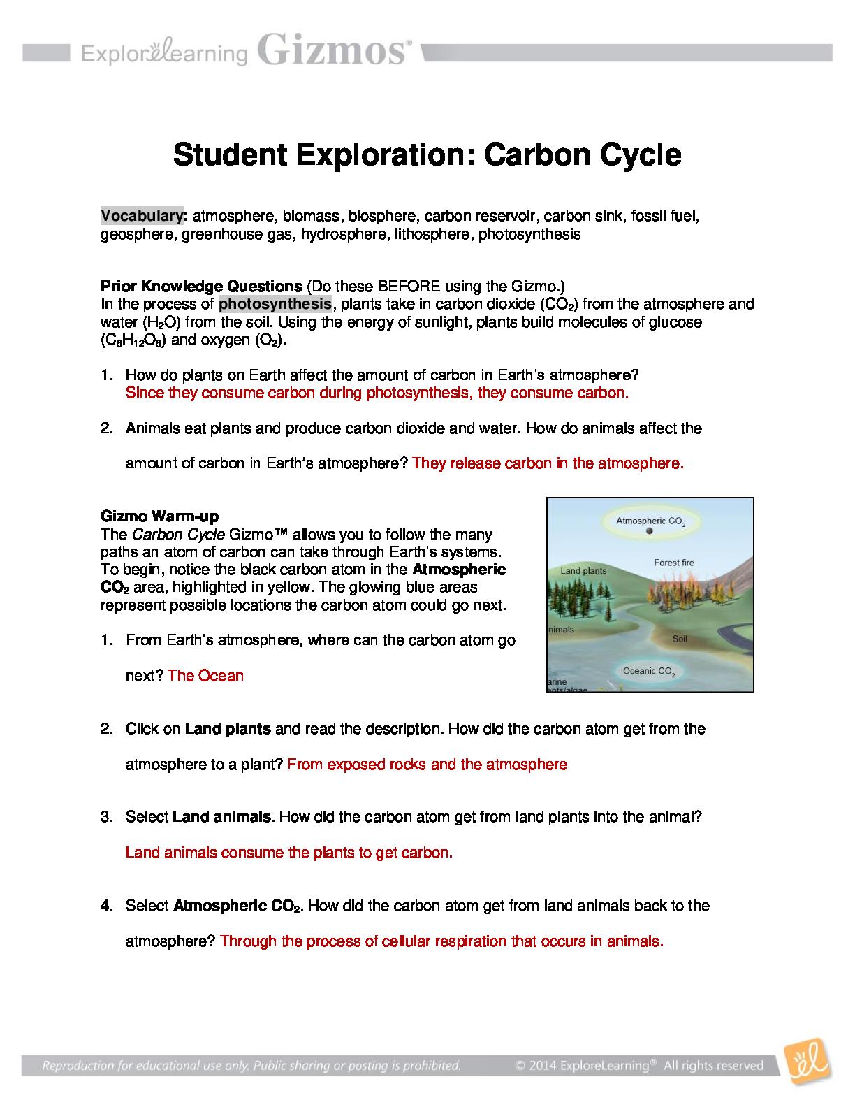 Gizmos: Carbon Cycle SE_Student Exploration All Answers Indicated in Red. Score Rating 93%.