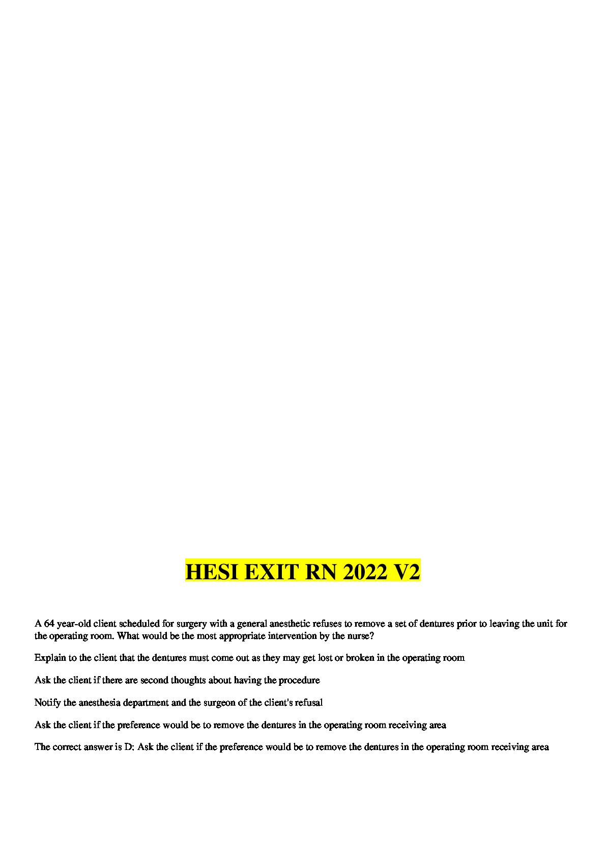 HESI EXIT RN 2022 V2 (Updated COMPLETE WITH CORRECT ANSWERS)
