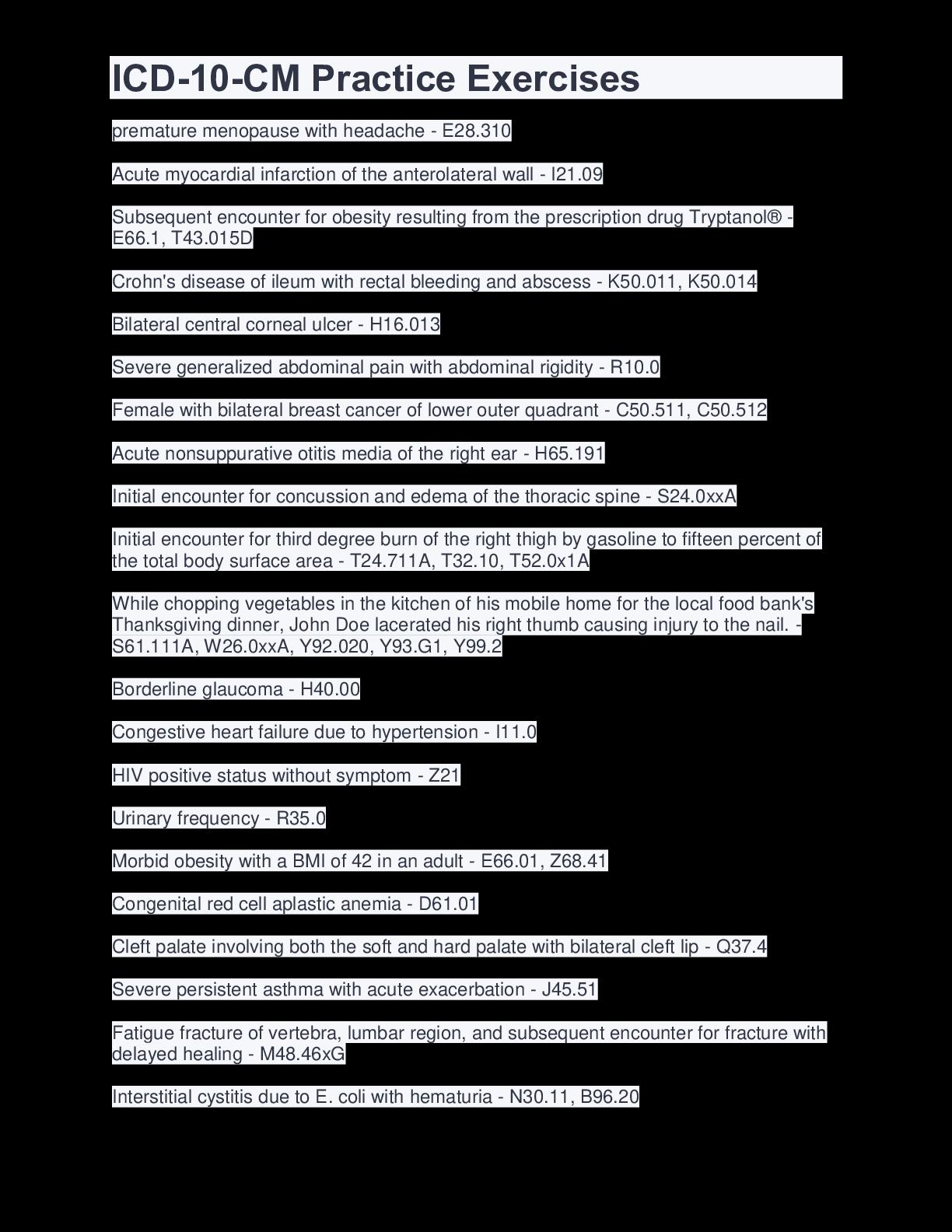 https://scholarfriends.com/singlePaper/262818/icd-10-cm-practice-exercises-questions-and-answers