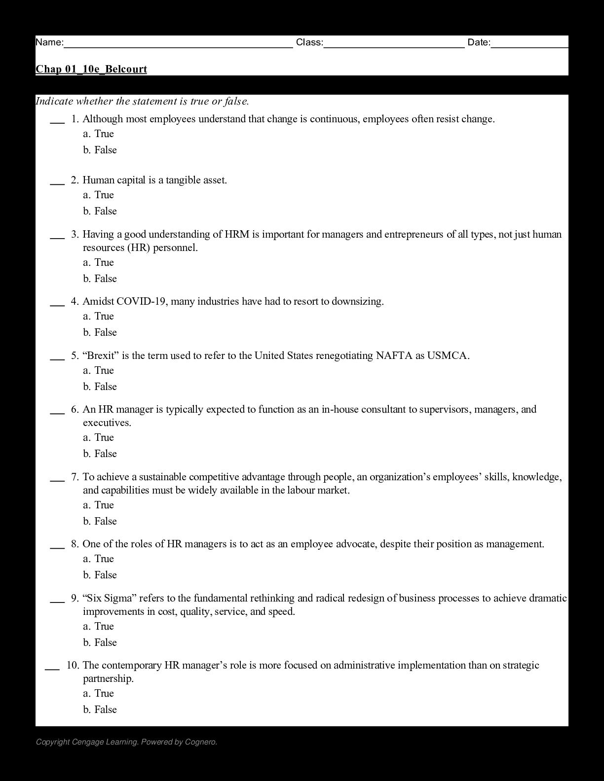 Managing Human Resources, 10th Canadian Edition by Belcourt, Singh, Snell TEST BANK