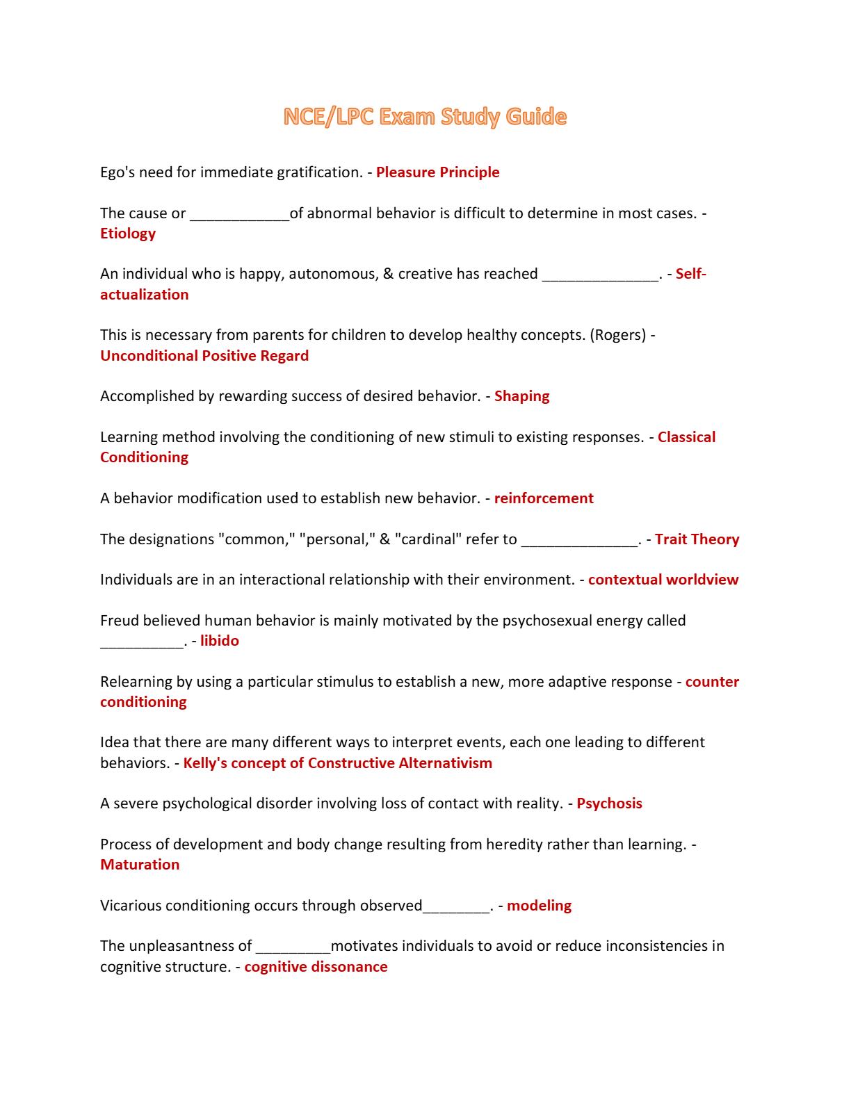 CLICK LINK BELOW TO ACCESS THIS DOCUMENThttps://scholarfriends.com/singlePaper/170518/ncelpc-exam-study-guide