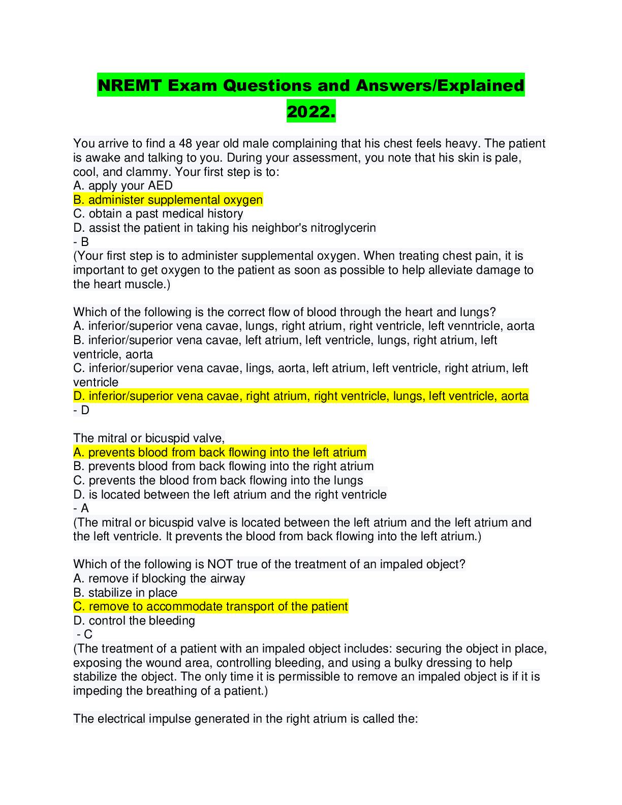 NREMT Exam Questions and Answers/Explained 2023/2024.