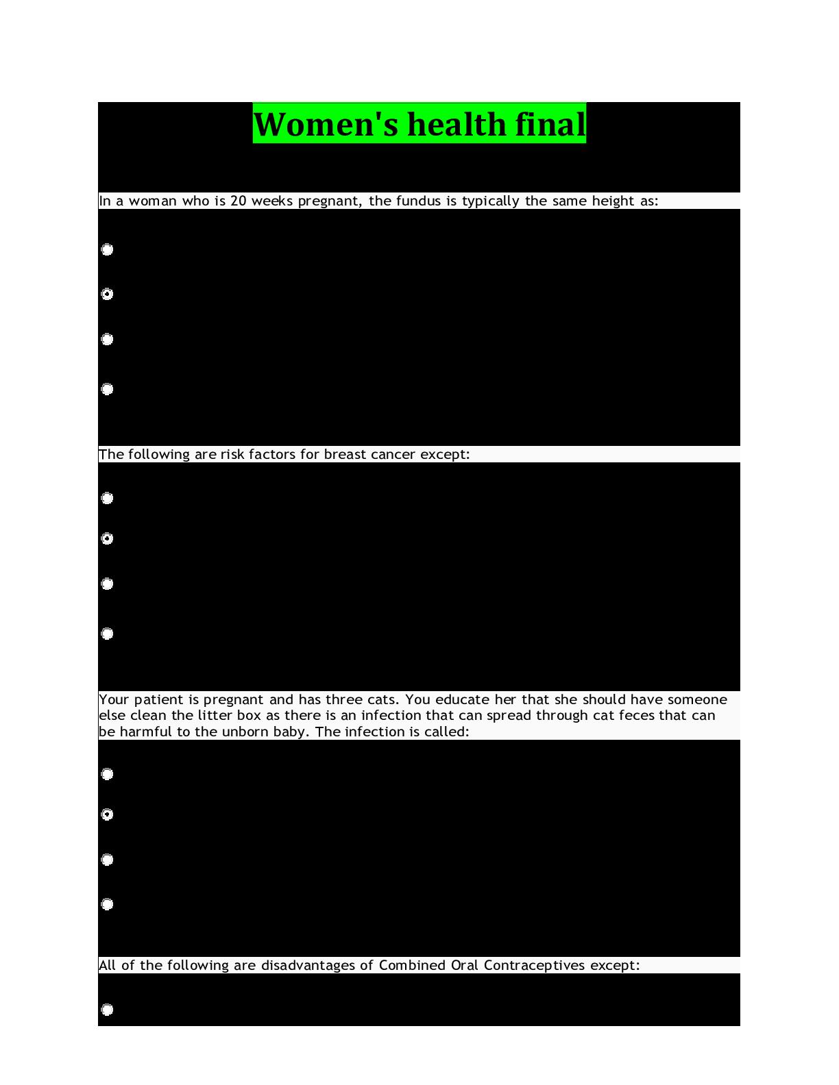 NRNP 6552 Women's health final exam questions and answers (Walden University)325377/nrnp-6552-womens-health-final-exam-questions-and-answerswalden-university