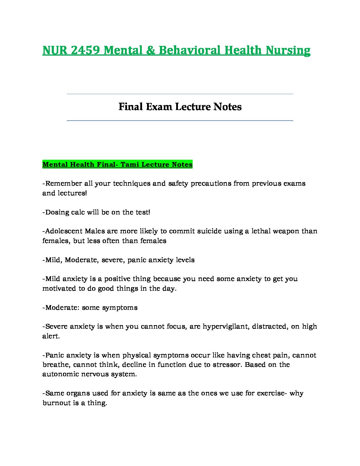 ACCESS85078/nur2459-nur-2459-final-exam-lecture-notes-latest-2021-2022-mentaland-behavioral-health-nursi