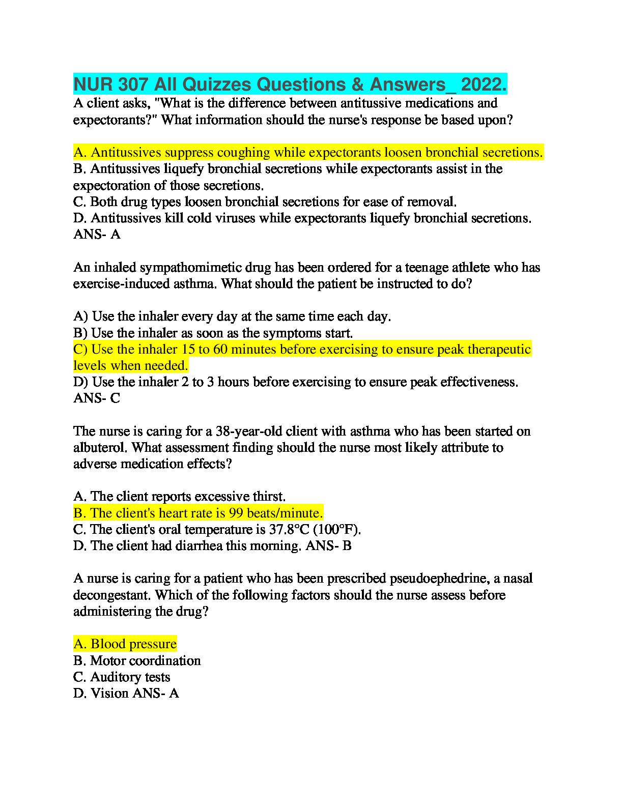 NUR307 Mercer University All Quizzes Questions & Answers_ 2022.