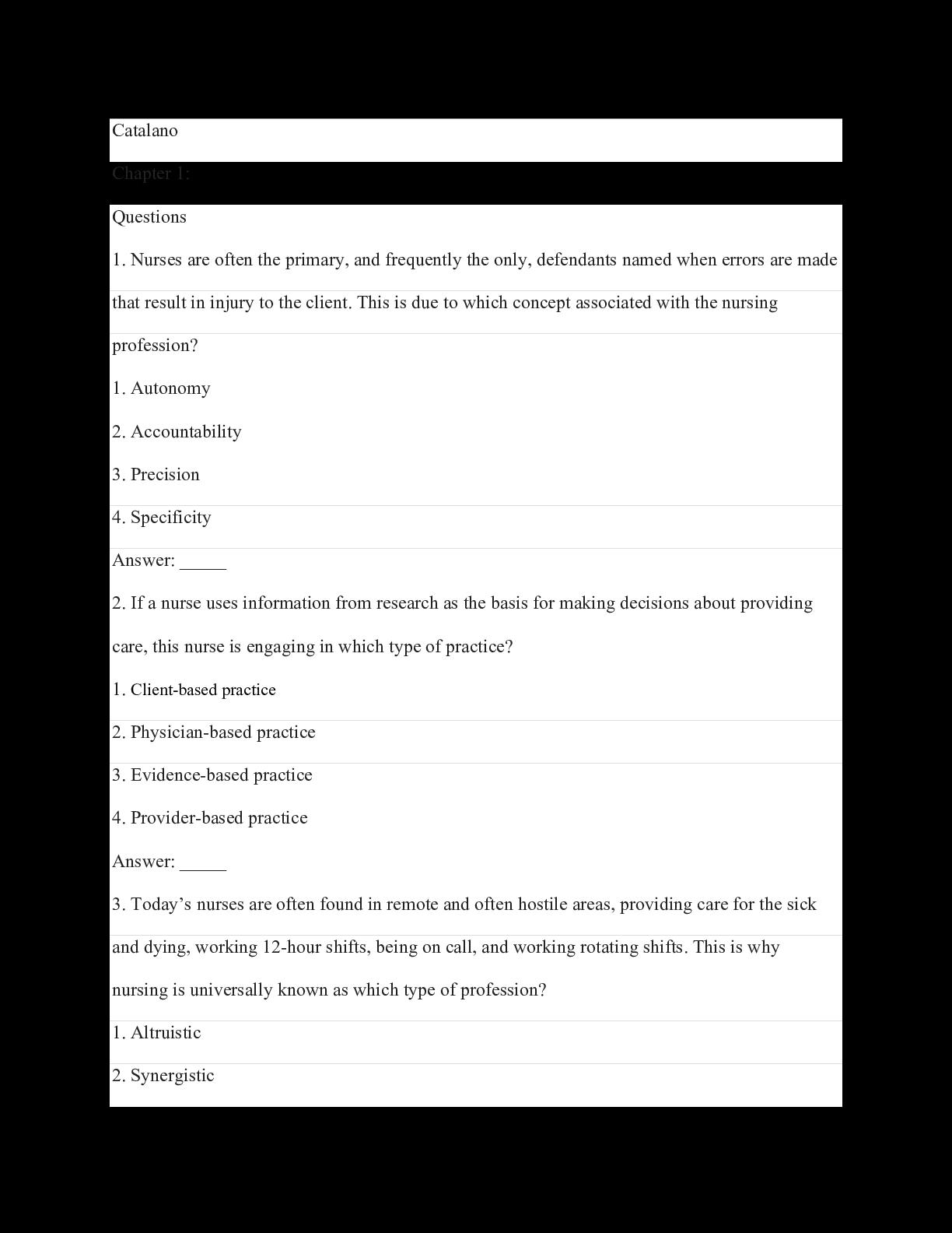 Nursing Now 8th Edition Today's Issues, Tomorrows Trends by Joseph Catalano TEST BANK
