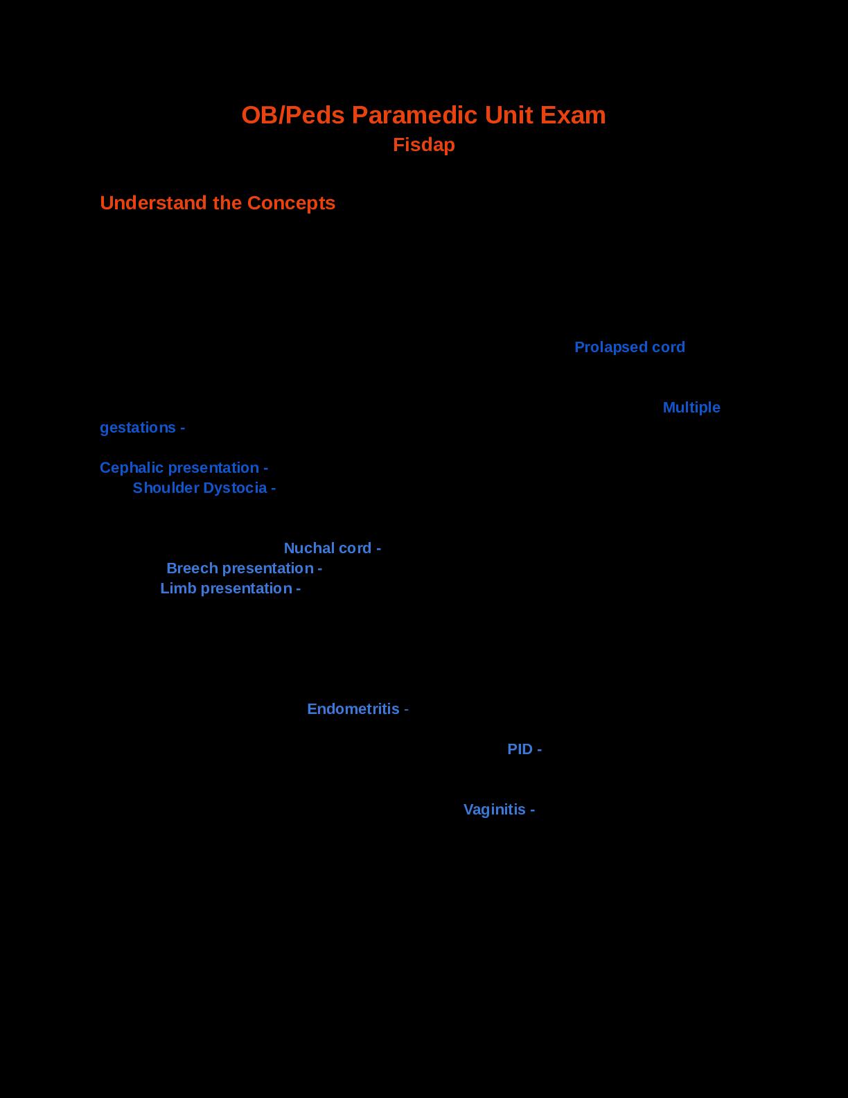 https://scholarfriends.com/singlePaper/192277/obpeds-paramedic-unit-exam-fisdap-exam-review