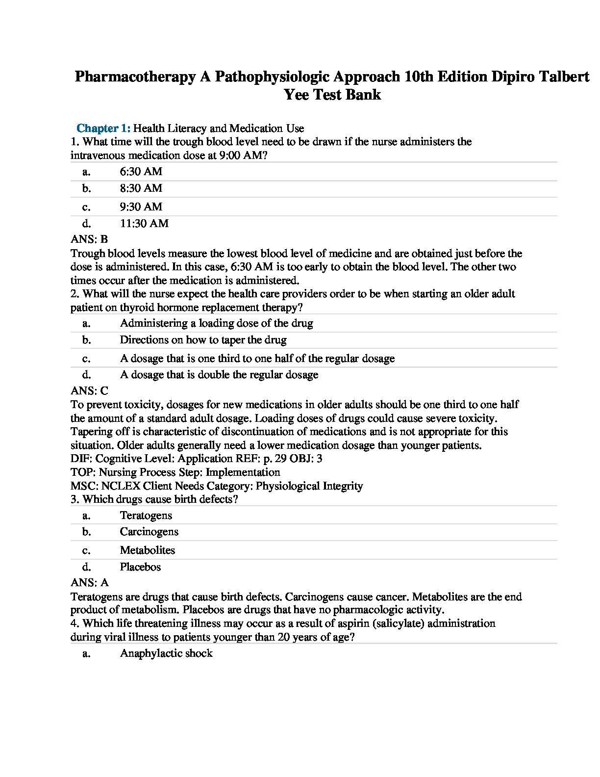 Dipiro Talbert Yee Test Bank