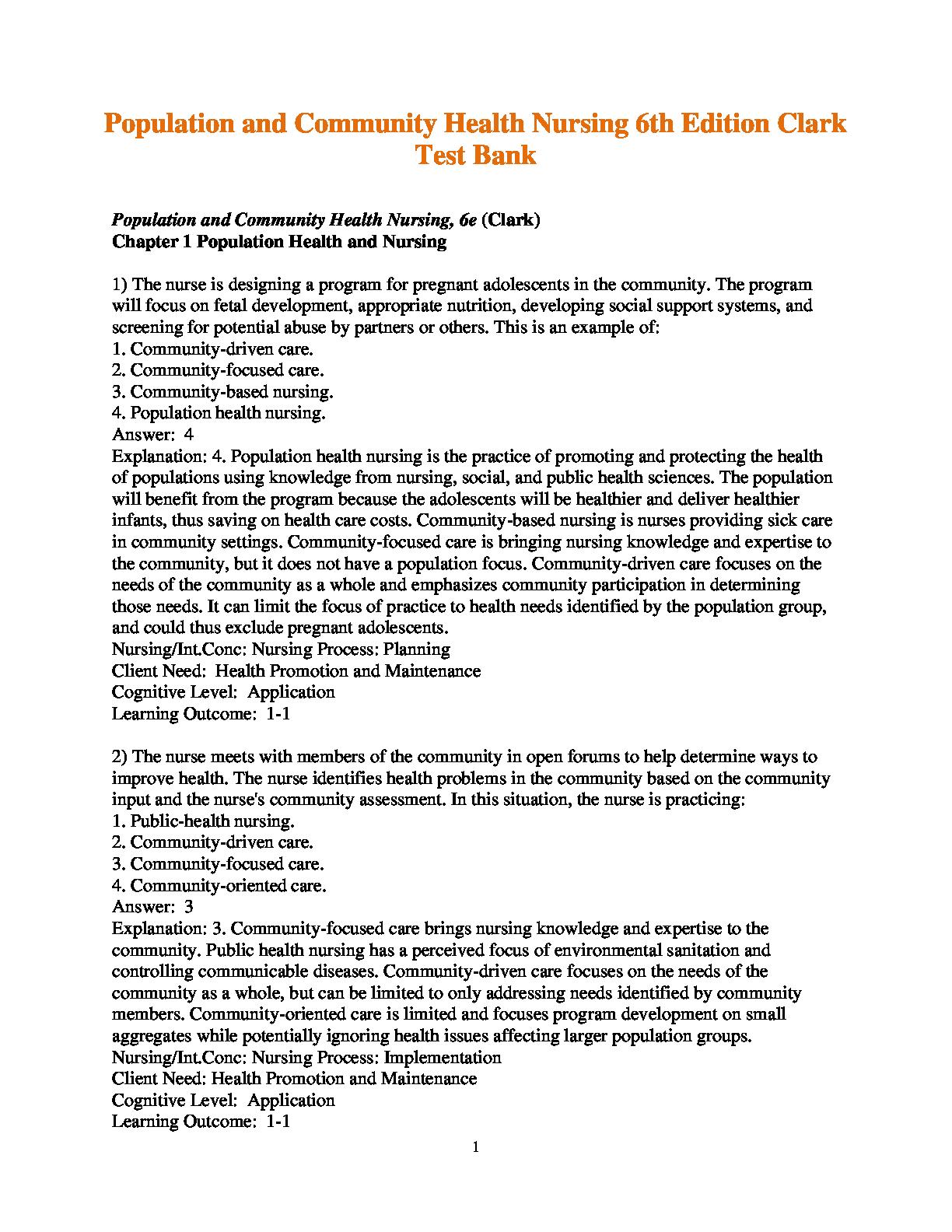 Population and Community Health Nursing 6th Edition Clark Test Bank