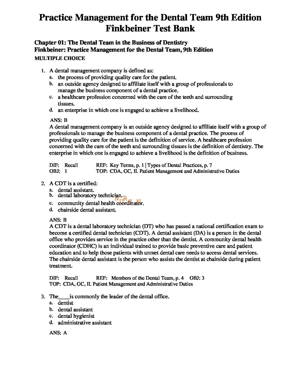 391578/practice-management-for-the-dental-team-9th-edition-finkbeinertest-bank