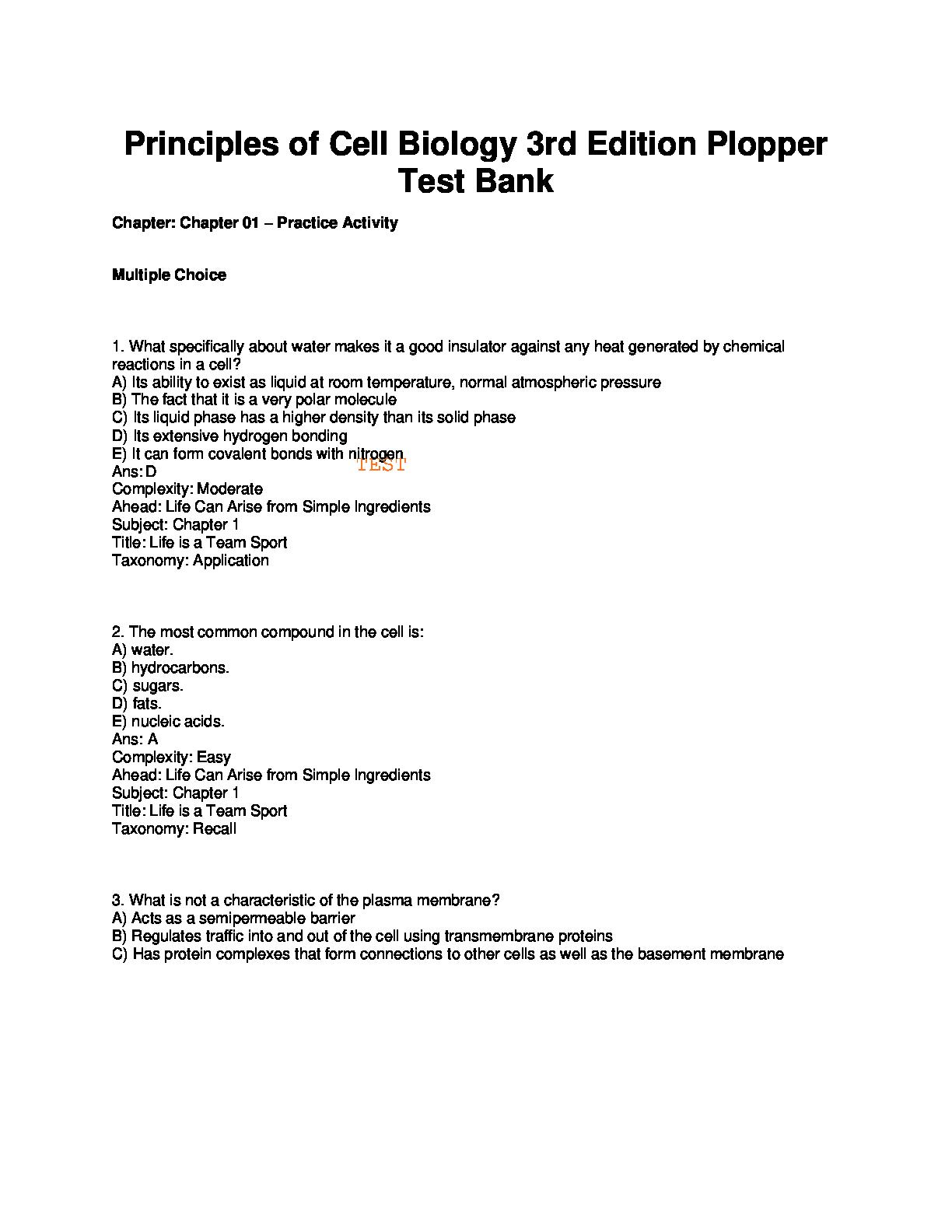 Principles of Cell Biology 3rd Edition Plopper Test Bank