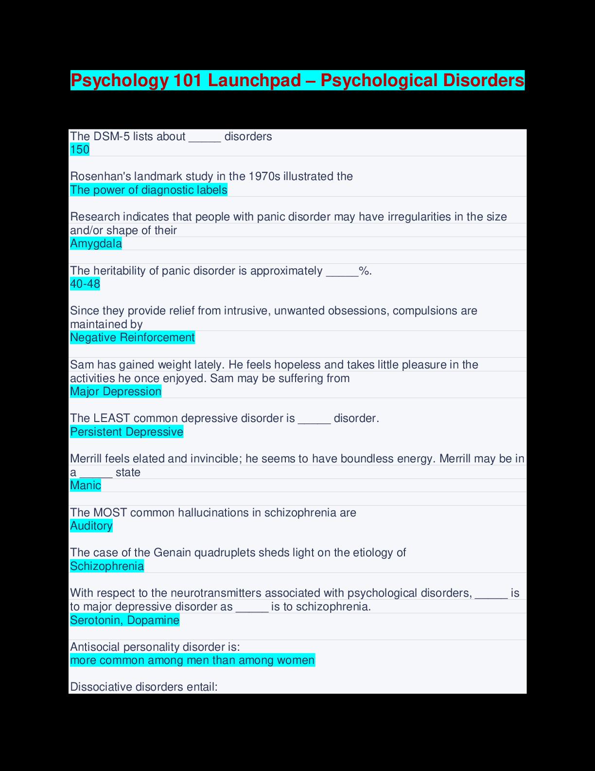 Psychology 101 Launchpad – Psychological Disorders