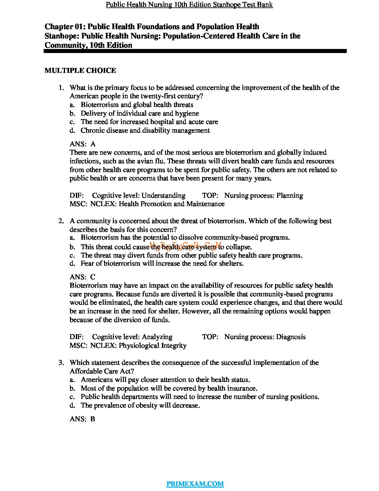 Public Health Nursing 10th Edition Marcia Stanhope; Jeanette Lancaster TEST BANK