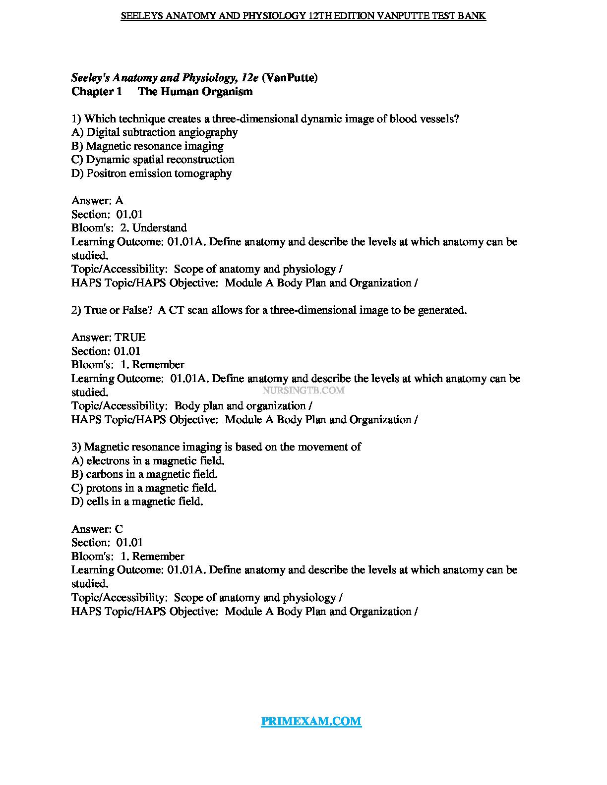 Seeley's Anatomy & Physiology 12th Edition Test Bank