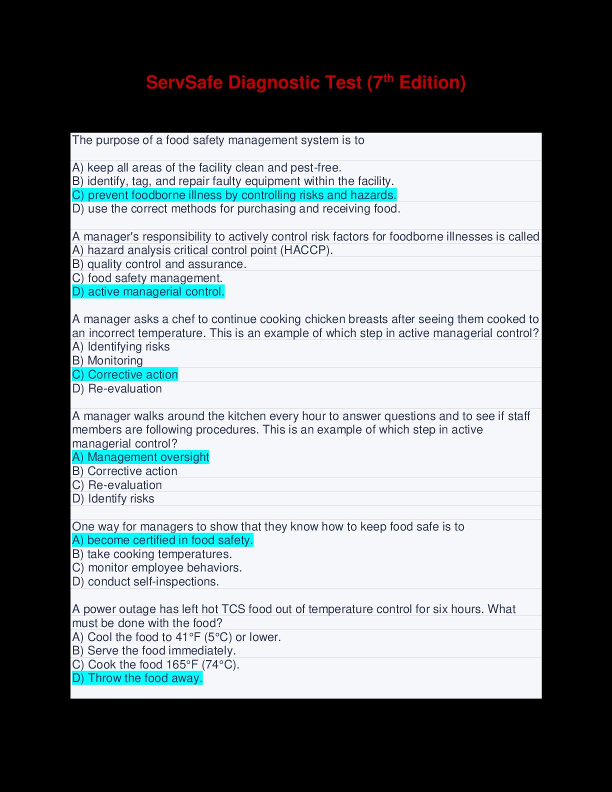 CLICK LINK BELOW TO ACCESS THIS DOCUMENThttps://scholarfriends.com/singlePaper/318684/servsafe-diagnostic-test-7th-edition