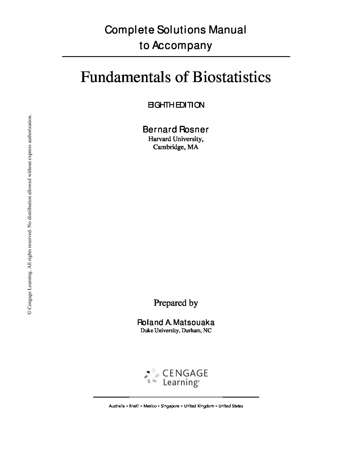 Fundamentals of Biostatistics 8th Edition Rosner Solutions Manual