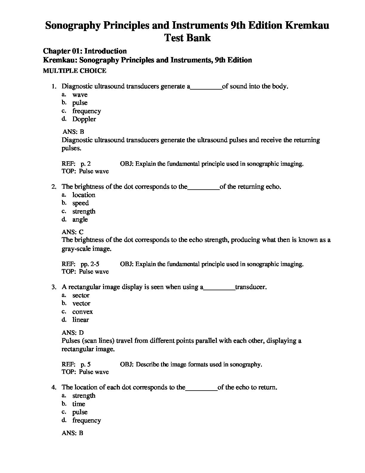 Sonography Principles and Instruments 9th Edition Kremkau Test Bank