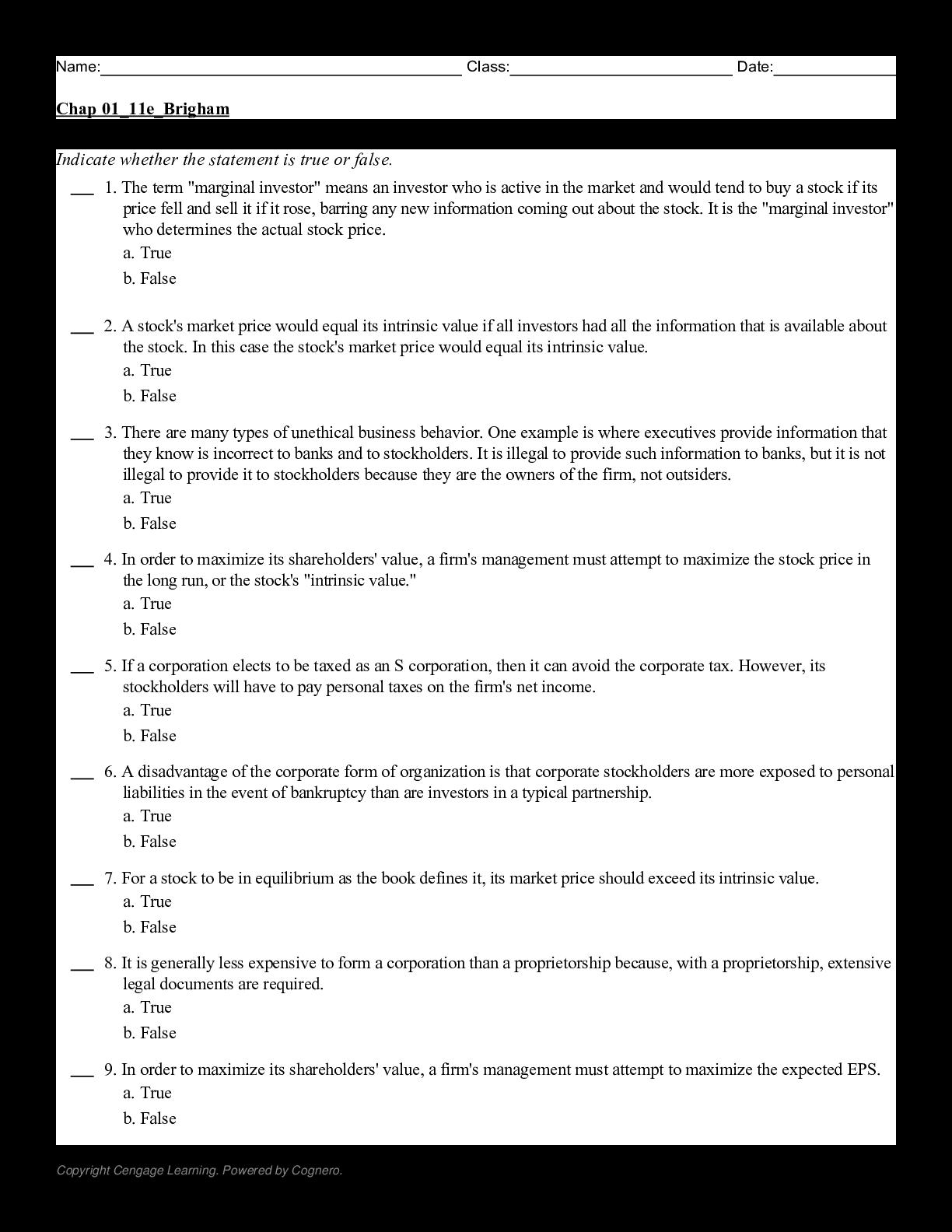 Test Bank for Fundamentals of Financial Management, Concise Edition, 11th Edition by Brigham