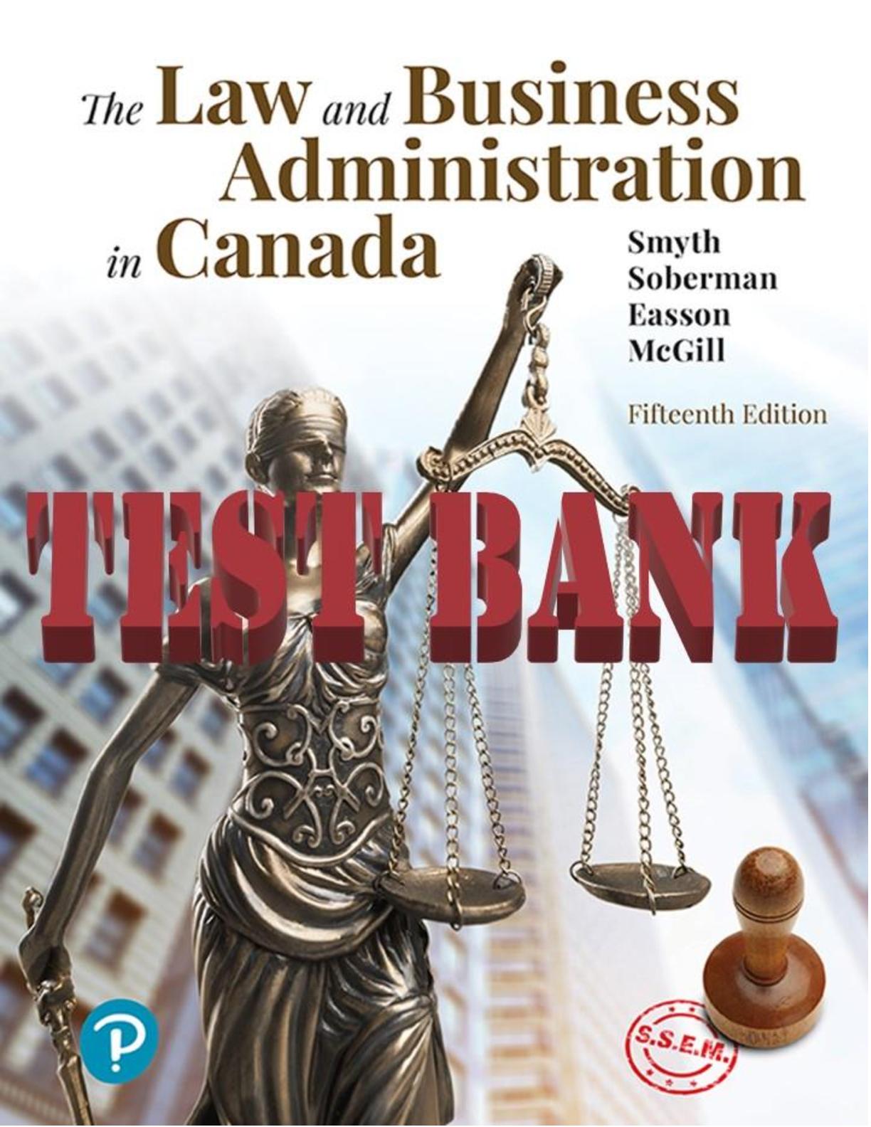 TEST BANK for Law and Business Administration in Canada, 15th Edition by J. Smyth, Dan Soberman, A. Easson and Shelley McGill. All Chapters 1-32