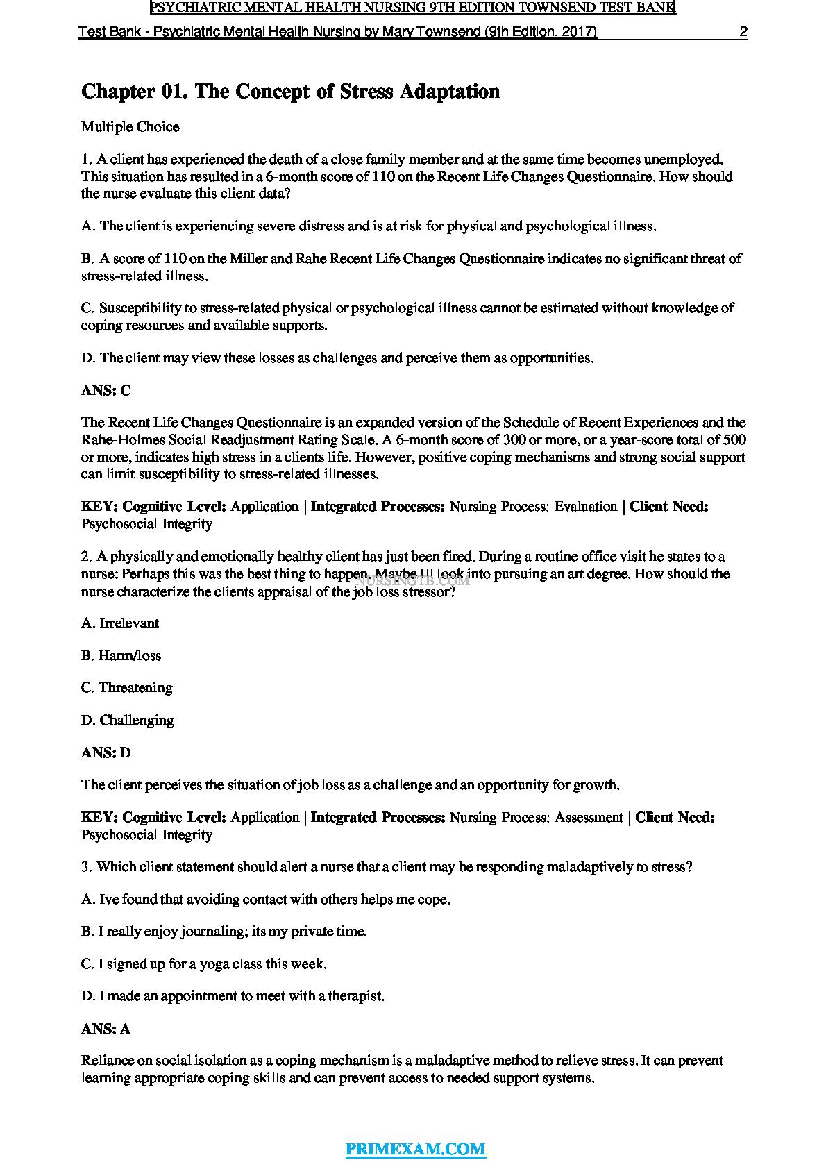 Psychiatric Mental Health Nursing Concepts Of Care In Evidence-Based Practice 9th Edition Test Bank