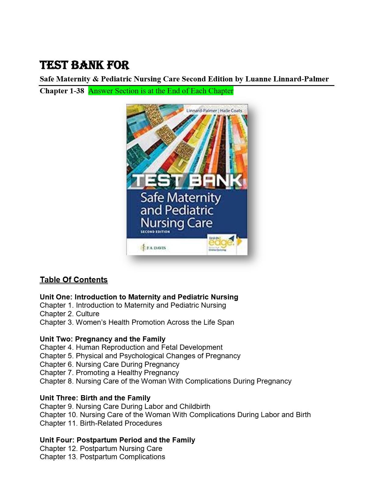 Test Bank Safe Maternity & Pediatric Nursing Care Second Edition by Luanne Linnard-Palmer Chapter 1-