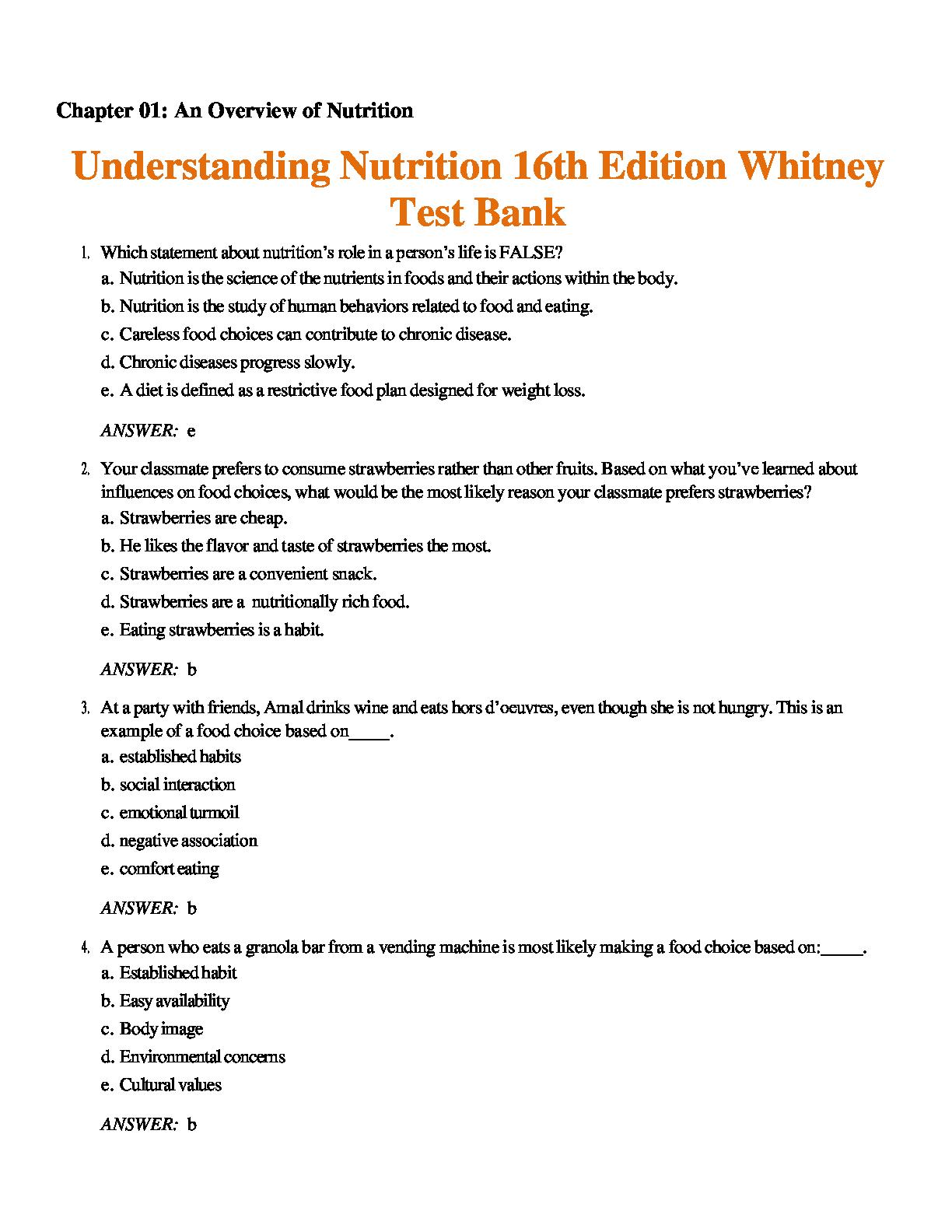 Understanding Nutrition 16th Edition Whitney Test Bank