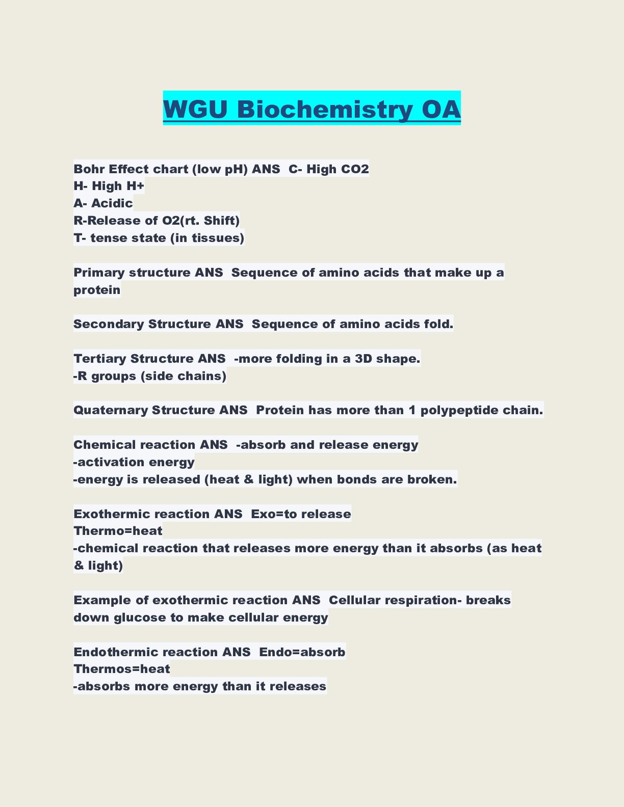 CLICK LINK BELOW TO ACCESS THIS DOCUMENThttps://scholarfriends.com/singlePaper/221872/wgu-biochemistry-oa