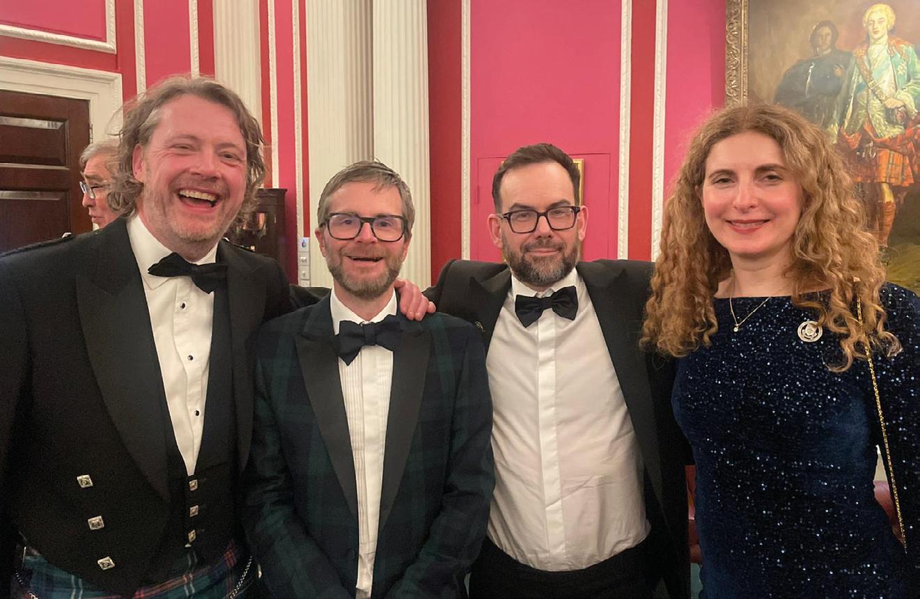 Left: Fiona at The High School London Club’s Annual Reunion & Dinner in 2023. Pictured left to right are her fellow Class of 1991 classmates: Jonathan Young, Ian Welsh and Neil Dryden.