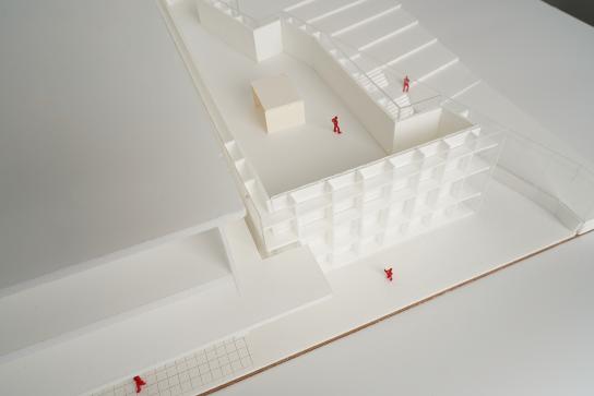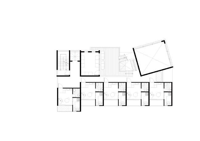 �인실 ��개와�지역�공공성을�띄는�프로그램들의�도입이�설계의�조건이었다. 앞서�제기한�의문에 해답을�찾기�위해, 개인실과�공용공간의�관계성을�사이트의�조건의�맞춰�고민하며�진행한 프로젝트이다. 결과적으로�저층부에�지역�주민이�이용가능한�도서관과�북카페를�기단으로�하고 �인�주거 ��개는�모두�남측에, 북측에는�멋진�뷰를�향유할�수�있는�공용공간들을�배치하였다.