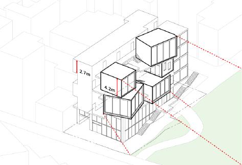 오늘�날의�공동주거 이�프로젝트는�오늘�날�공동주거에�의문을�던지며�시작한다. 기존�공동주거의�공용공간들은�대부분 저층부에�위치해�있어�수동적으로�그�공간을�경험하게�된다. 그러나�그런�상황을�매번�잘�즐길�수 있는�사람들은�없을�것이다. 그렇다면�어떠한�공용공간일�때�사람들은�더�효율적으로�그리고 자발적으로�그�공간들을�사용할�것인가?