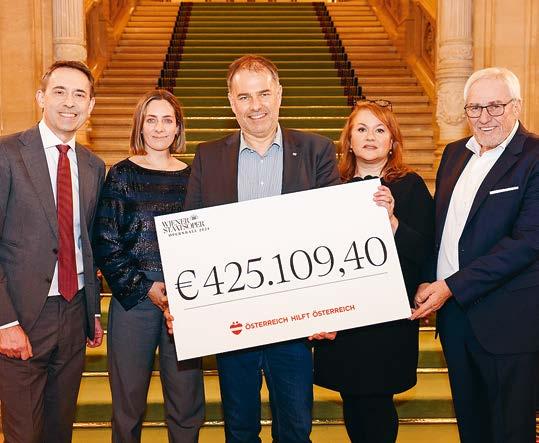 Scheckübergabe. Beim diesjährigen Opernball wurde für die Initiative „Österreich hilft Österreich“ (ÖHÖ) wieder eine beeindruckende Summe gespendet.