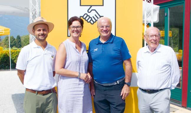 v. l. n. r. Hermann Hagleitner (Geschäftsführung Hilfswerk Salzburg), Christian Struber (Vereinspräsident Hilfswerk Salzburg), Barbara Schweitl (Bürgermeisterin Puch bei Hallein) und Anton Sedlak (Regionalleitung Tennengau) bei der Jubiläumsfeier