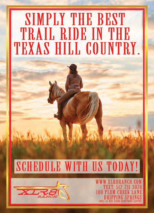 FYI: XLR8 Ranch is located at 100 Plum Creek in Dripping Springs. For more information about booking trail rides, riding lessons, boarding, sales and leasing, trailer storage and consignments, visit the website at xlr8ranch.com, text or call 512-731-3076.