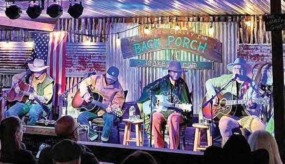 The weekend begins Friday evening at the Back Porch Bar and Grill, located at the Historic Leakey Inn in downtown Leakey. With a top-notch full bar and down-home cooking, you can eat, drink, and dance the night away listening to sneak peaks from the main event songwriters and music from talented musicians.