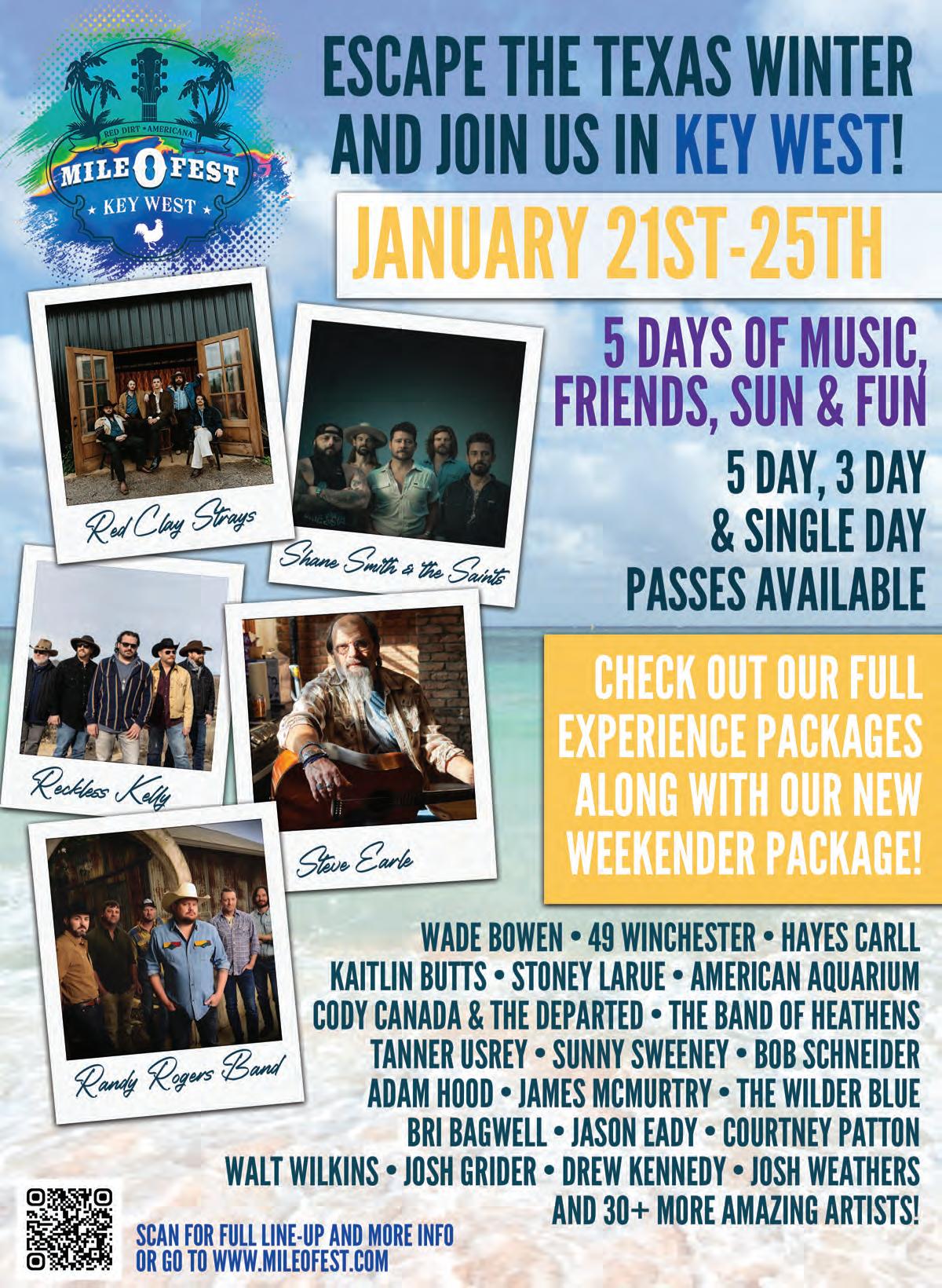 KERRVILLE: Welcome Home Fest. Event offers shows on the Threadgill Theater Stage and ticket sales are capped to match its capacity. kerrvillefolkfestival.org.