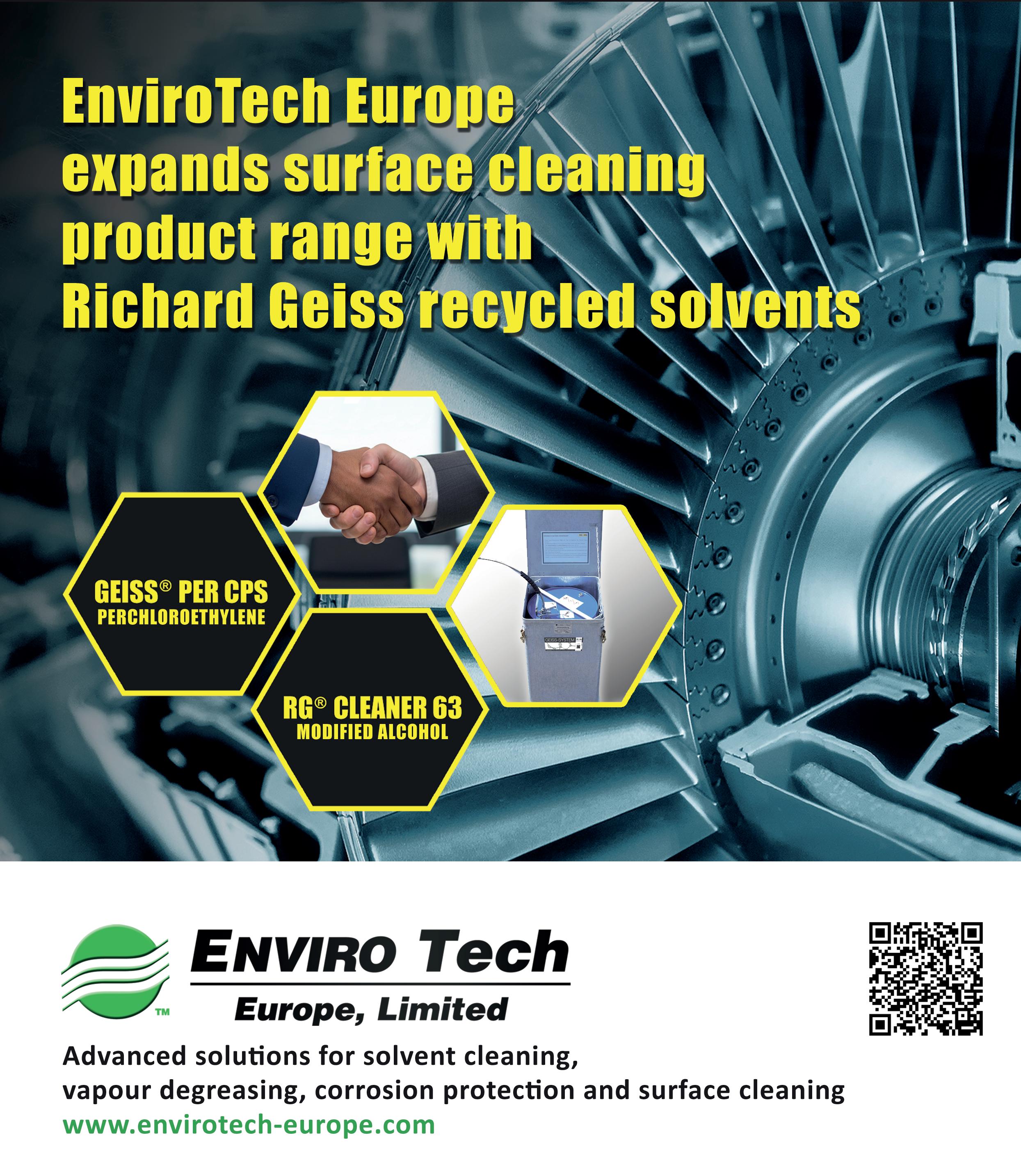 PRETREATMENT, SURFACE PREPARATION, DEGREASING & CLEANING ENVIROTECH EUROPE EXPANDS SURFACE CLEANING PRODUCT RANGE WITH RICHARD GEISS RECYCLED SOLVENTS. 38 PRECISION CLEANING FOR HIGH-VOLUME MEDICAL INJECTION MOULDED COMPONENTS.