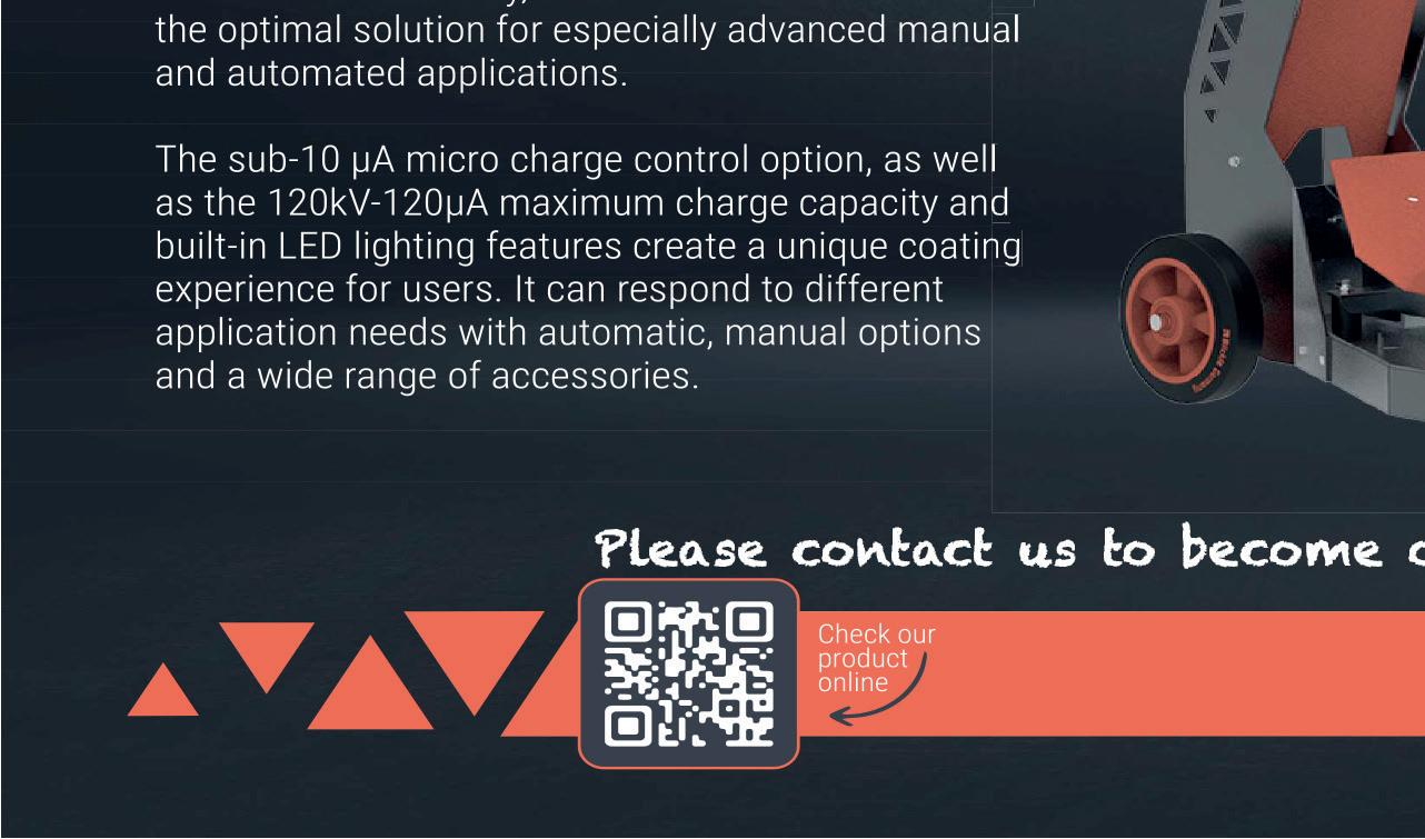 Let‘s talk about powder coating. A technology that is proven since decades and actually, it‘s just getting started with FLOWSENSE. FLOWSENSE? It‘s a software masterpiece and a bunch of small sensors that do big things: Consistent powder output from the first to the last workpiece. Reliability, measured in real time. Put quality on repeat!