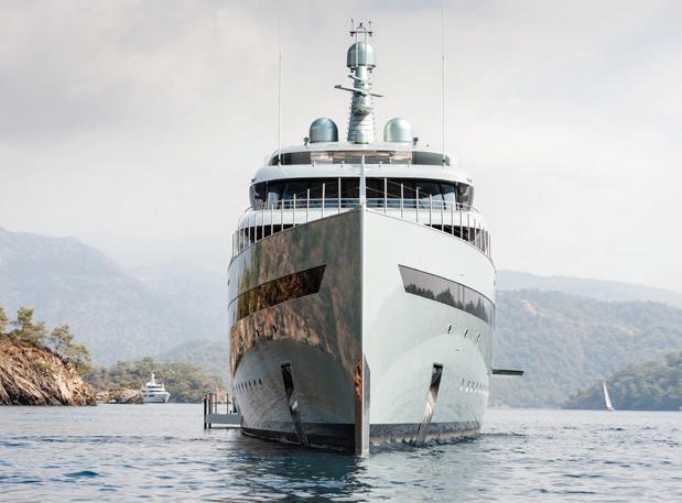 Another standout feature of the Savannah is its spacious and versatile deck areas. e a owner- and main deck areas have been designed as a single giant open inside/ outside spaces, enclosed by weathertight sliding doors. is unique design allows for a seamless transition from the swimming pool to the salon, creating an immersive al fresco experience. McCumber explains, " e owner of Savannah loves to be at one with the water. is phenomenal design allows him to run from the main salon and dive straight into the sea."