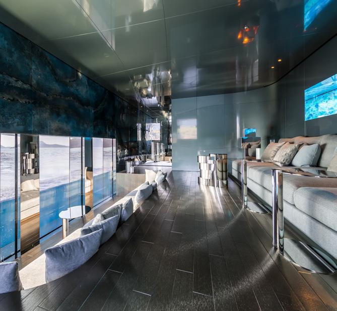 One of the standout structural highlights is the "underwater lounge" on the port side, where guests can observe the marine life through specially thick glass. This room also doubles as a cinema, offering a oneof-a-kind experience on a superyacht. The Savannah also offers ample accommodation for guests, with four large guest suites, one VIP stateroom with a balcony, and an owner's stateroom. The yacht also features exceptional facilities for its 26 crew members and a high-end tender bay finished in teak.