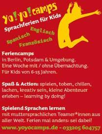 Sucht ihr nach Ideen für die Familienfreizeitplanung oder nach Preisvor teilen, die diese viel günstiger machen? Für sechs Euro sichert ihr euch mit dem Berliner FamilienPass rund 300 Freizeit- und Kulturermäßigungen, mit denen ihr bares Geld spart. Hinzu kommen 200 Verlosungen zu Events, Ausflügen und Kurzreisen. Spart z.B. zehn Euro beim Tagesausflug in den Zoo und Tierpark Berlin, fünf Euro auf jedes Familienticket bei JUMP3000 oder gewinnt Freikarten für das GEOLINO LIVE Open-Air. Auch das Um land könnt ihr erkunden. Verlost werden z.B. Ausflüge zum Familienfreizeit park Majaland Kownaty oder zur Phaeno in Wolfsburg. Jeden Tag ein neues Abenteuer – für jeden Geschmack das Passende dabei. Ein super Ge schenk für alle Berliner Familien. Alle Infos zum Pass: jugendkulturservice.de