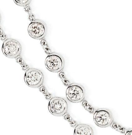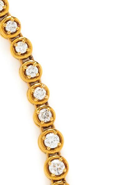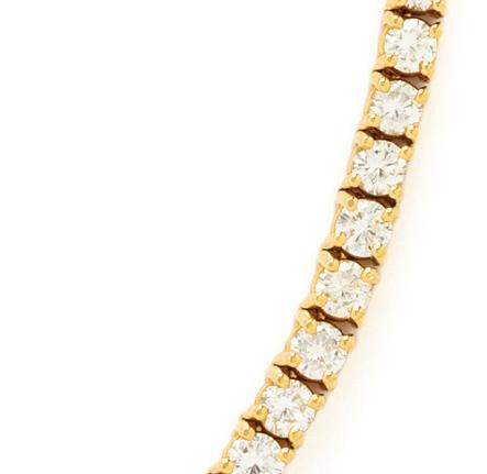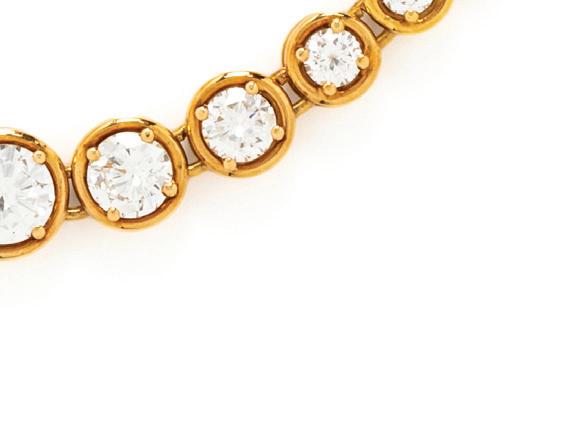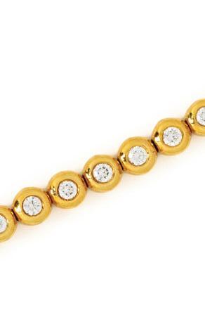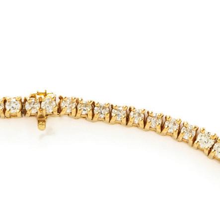 Containing 39 round brilliant cut diamonds weighing approximately 11.00 carats total. Mounted in 18 karat yellow gold. 6 3/4 inches long.