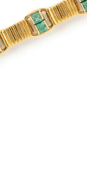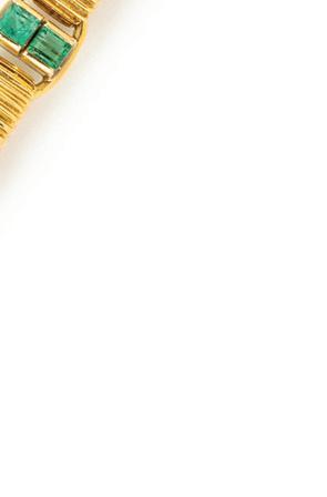 DAVID WEBB, YELLOW GOLD, DIAMOND AND EMERALD GOAT CUFF BRACELET