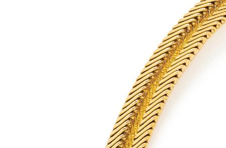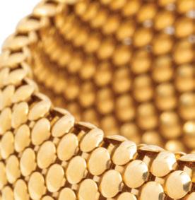 In a flexible design containing numerous round brilliant cut diamonds weighing approximately 8.40 carats total. Mounted in 18 karat yellow gold. Ring size 8 1/2.