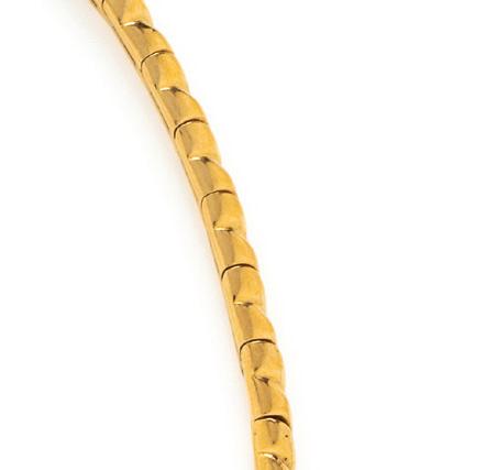Containing round brilliant cut diamonds and cabochon ruby eyes, hinged at back. 18 karat yellow gold and platinum. 6 inches inner circumference.