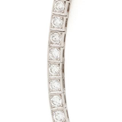 Containing round brilliant, baguette and tapered baguette cut diamonds weighing approximately 8.50 carats total. Mounted in platinum. 2 3/4 x 1 1/8 inches.