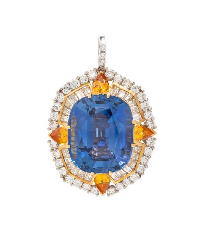 CEYLON SAPPHIRE, YELLOW SAPPHIRE AND DIAMOND PENDANT