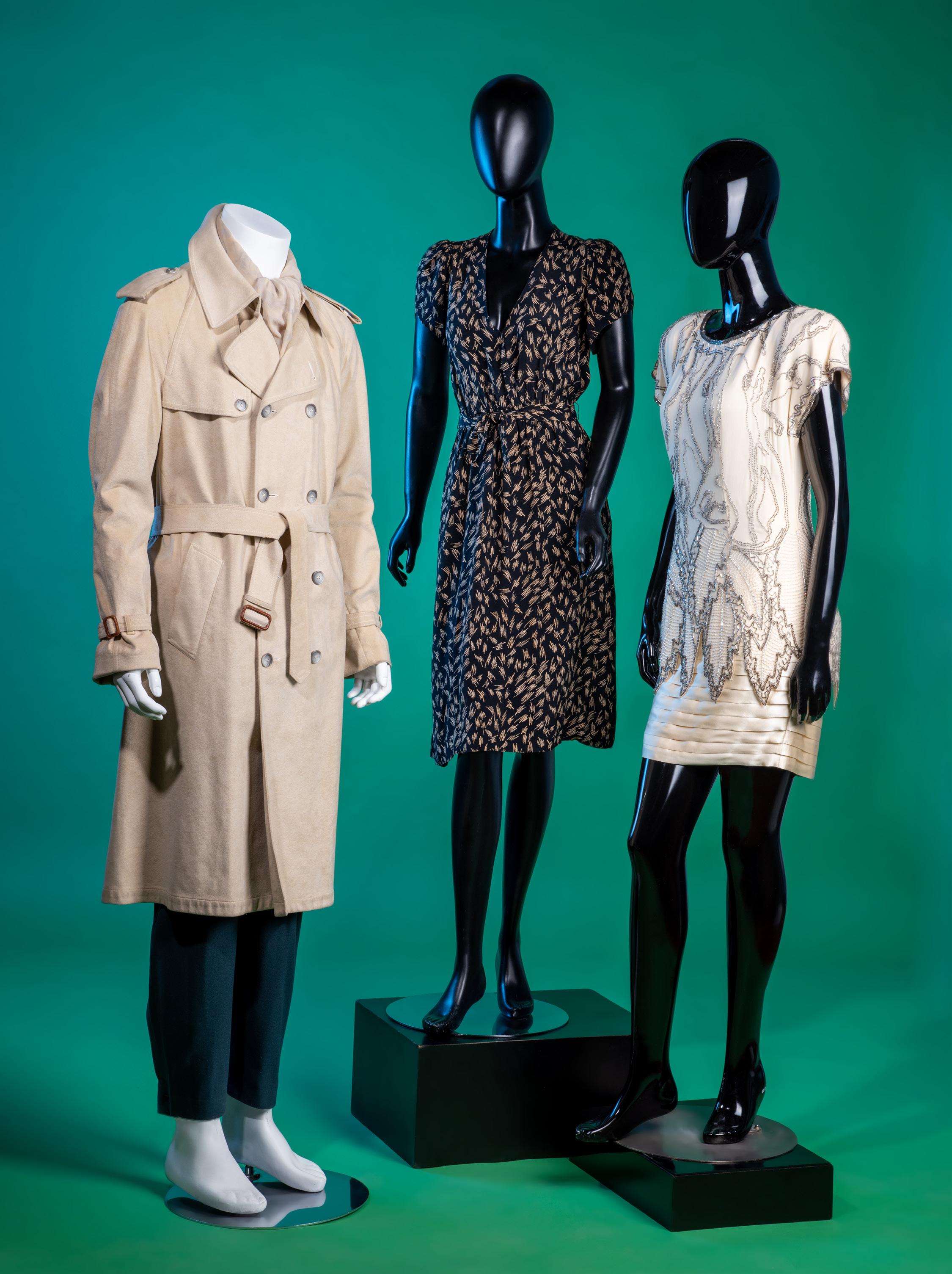 ABOVE Left to Right: Robe, 1850s, Lot 88 Liberty of London Cape, c. 1900, Lot 96 Balenciaga Dress, 1950s, Lot 103