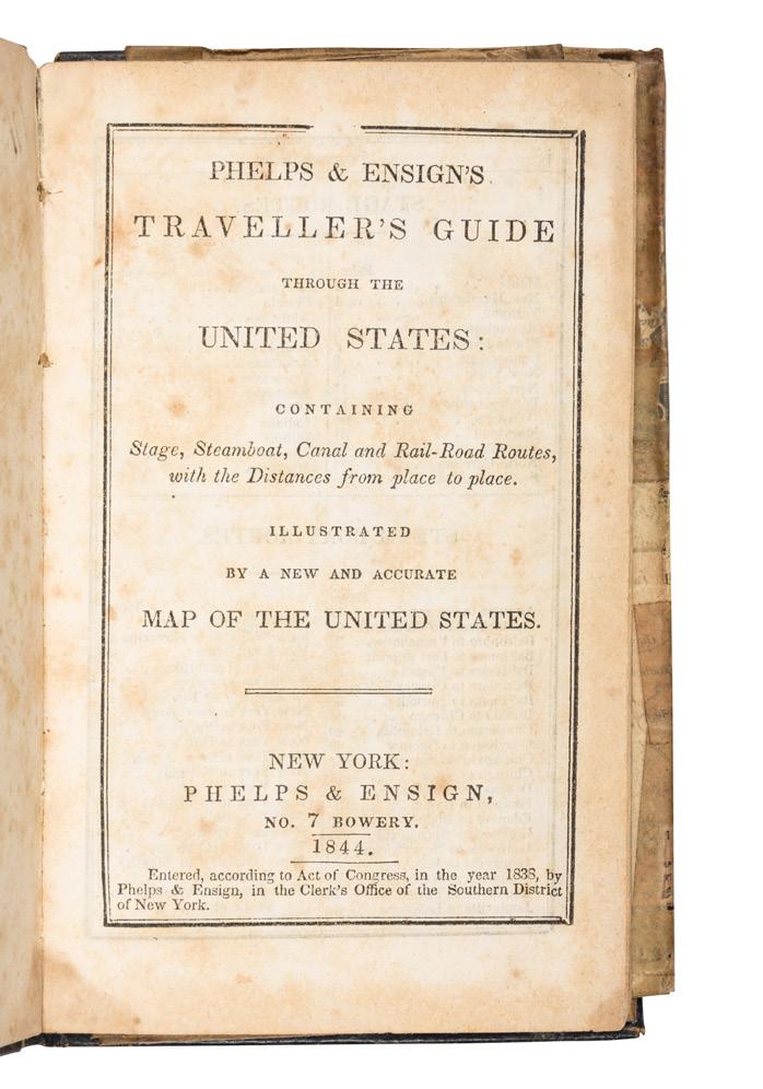 8vo (239 x 149 mm). Folding route map frontispiece; 4pp. publisher’s advertisements at front. (Frontispiece toned, minor spotting.) Original cloth-backed boards, printed paper label on spine, uncut (rebacked preserving original cloth and endpapers, some light staining and wear). Provenance: Missouri Historical Society (bookplate); collector’s bookplate, a few pencil marks.