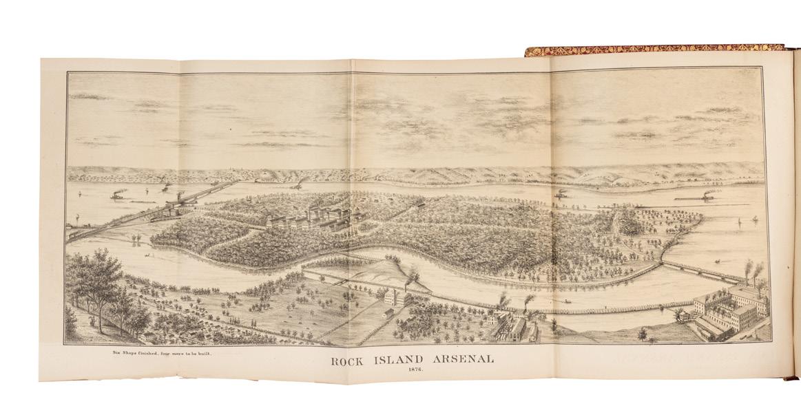 2 volumes, 8vo. Lithographed frontispiece, 4 lithographed maps[3 folding], 36 chromolithographed plates. (One folding map with 5” tear repaired verso, scant spotting.) Publisher’s blind-stamped blue cloth gilt uncut and unopened (corners slightly bumped, a few minor stains, otherwise bright). Provenance: Collector’s bookplate, a few pencil marks.