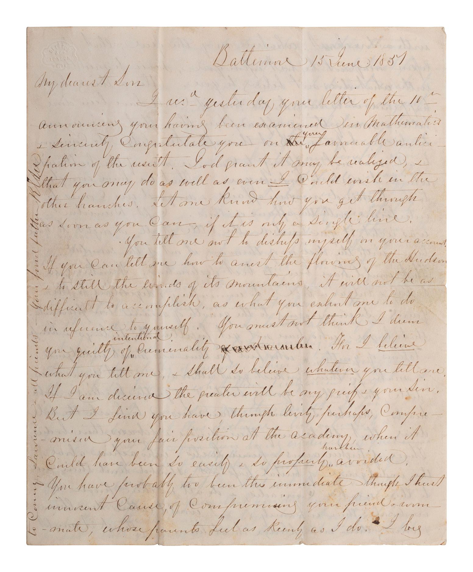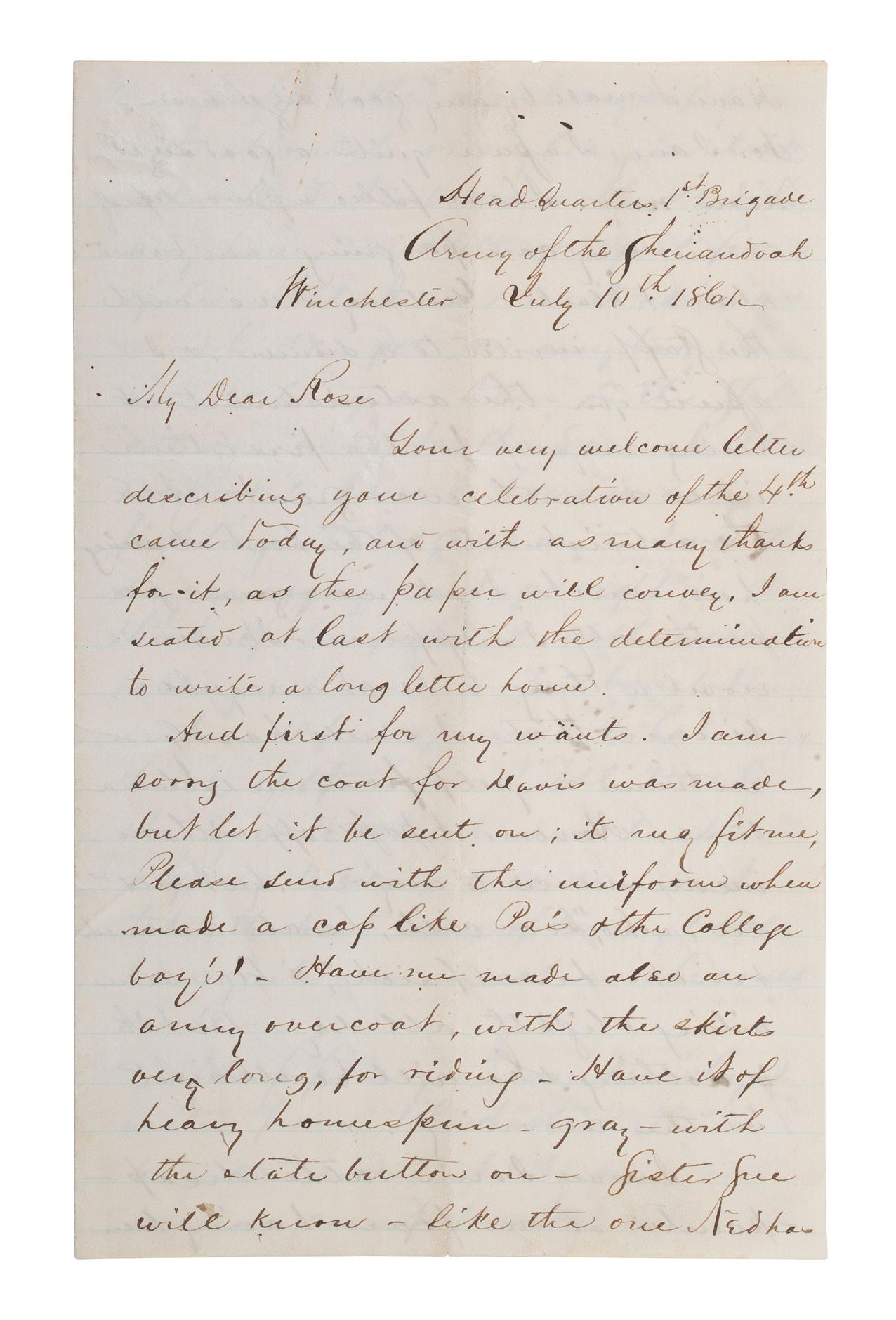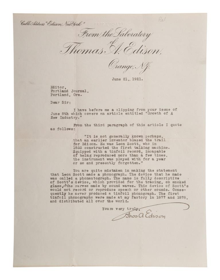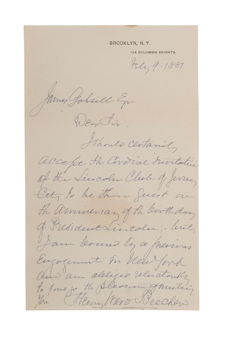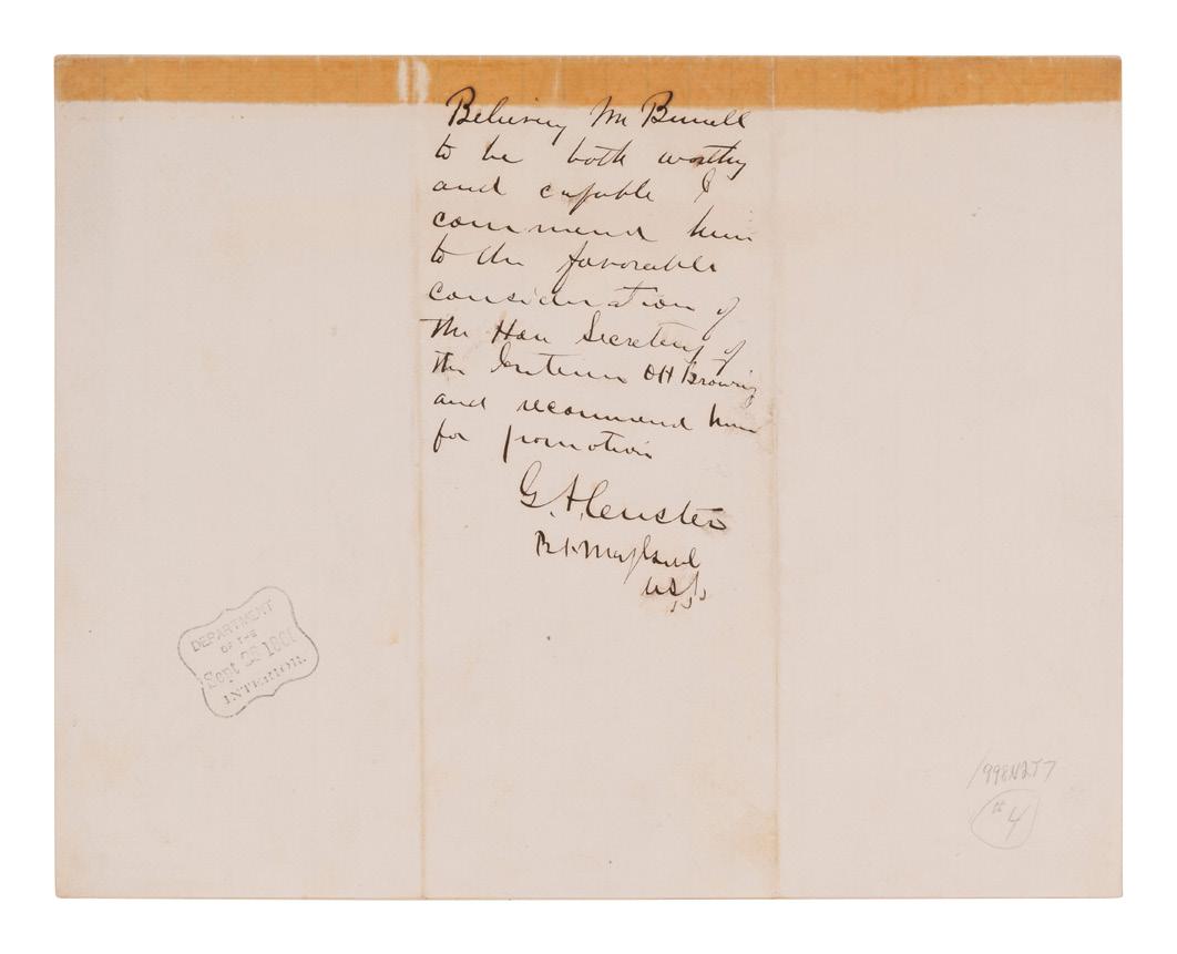 Provenance: Parke Bernet, Autograph Letters and Documents Main American, Collected by the Late Forest G. Sweet, Battle Creek, Michigan. Part Two. 22-23 October 1957.